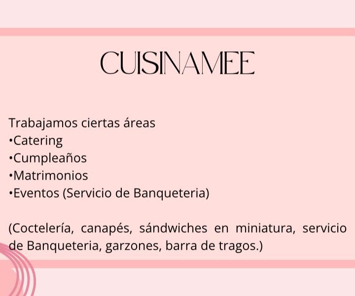 Se realizan servicios de banqueteria , almuerzos, postres, pasteles, katering, celebraciones, cenas, cumpleaños, eventos .